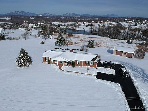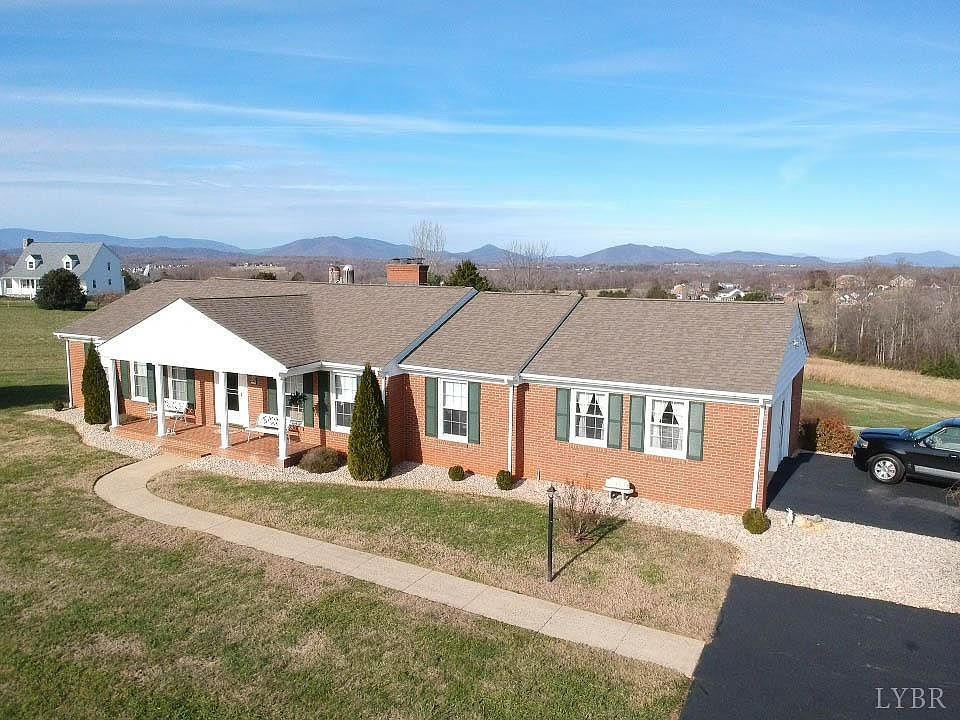 Enjoy fantastic panoramic views of the Blue Ridge Mountains from the Peaks of Otter to Tobacco Row Mountain in Amherst County. The original owner is downsizing and selling this absolute move-in ready brick Ranch home with formal living and dining rooms plus family room with gas logs brick fireplace and 3 Br's / 2 Baths and a 1-car attached garage on the main level plus an additional 40' x 32' 2-car detached garage / shop. The terrace level 1-bedroom apartment includes living room with gas log brick fireplace, full bath, an office, workshop with separate entrance, plus 976 SF storage space. Situated on 1.03 Acres. Numerous upgrades include New roof, new separate heat pumps for main and terrace level, replacement windows and sliding doors, storm doors, walk-in shower in Master, stained deck, recently painted interior, custom built-in bookcases, and china cabinet. Please see DocBox for list of additional improvements.