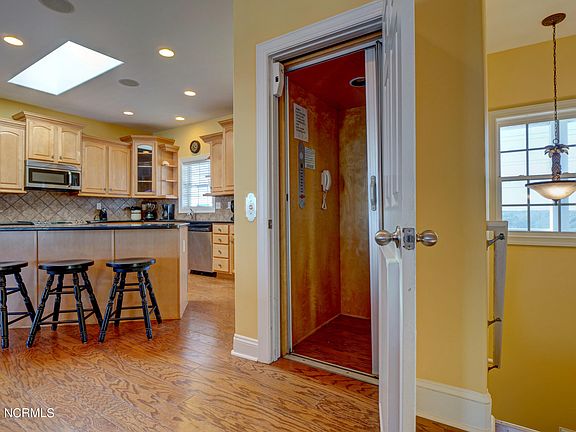 Oceanside with private beach walkway on this key lot 5 bedroom (all bedrooms are en suite) with 5.5 baths and an elevator. Updated and well maintained, this money maker is booked for $65k in 2021 rentals to date. Protective dunes and excellent views of ocean and sound from multiple decks. A reverse plan maximizing views has large open living area, granite and stainless kitchen, powder room and master suite on top level. A secondary living area on bedroom level with 4 ensuite bedrooms and a separate laundry room. There's a hot tub with ocean views on this level.