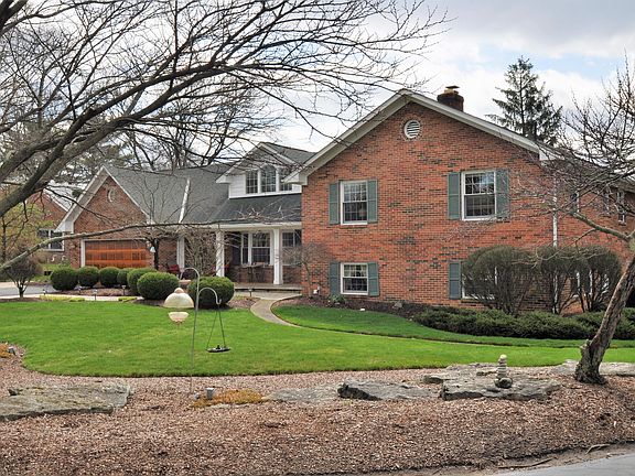 Extensively renovated & redesigned by its current owners, this brick home exudes warmth & charm! Open, flowing space w/exquisite detailing & pizzazz! Custom designed for its hillside setting w/breathtaking views of the valley beyond! Two ground levels! Fabulous gourmet Kitchen w/over 30' of granite counters, 2 bar seating areas, top-of-the-line appls (SubZero, Bosch, etc.) 14'x 11'Eating Area overlooks outdoor Dining Terrace. Huge 25'x 21' Family Rm w/WBFP and Wet Bar opens to incredible outdoor living areas w/flat panel TV, stereo speakers, gas log firepit, huge patio, golf putting green, and basketball court area. Home Theatre & Workout Rm. off Fam. Rm! 4 generous family BR's plus a seperate 700 sq.ft. Owner's Suite! Zoned HVAC, Extensive Audio/Video system in main rooms. So much more!