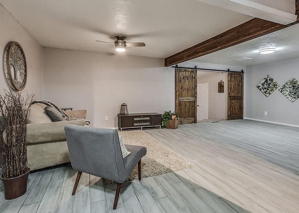 Come see this updated 3 bed, 2 full bath home. Open floor plan with lots of room! Remodeled kitchen with granite counter-tops, stainless steel appliances, new light fixtures and light ceramic wood-look tiles in the LARGE living areas. New roof, covered back patio and Just 10 minutes to Sooner Gate at Tinker Air Force Base, 15 minutes to Oklahoma City Downtown and less than 20 minutes to the airport.