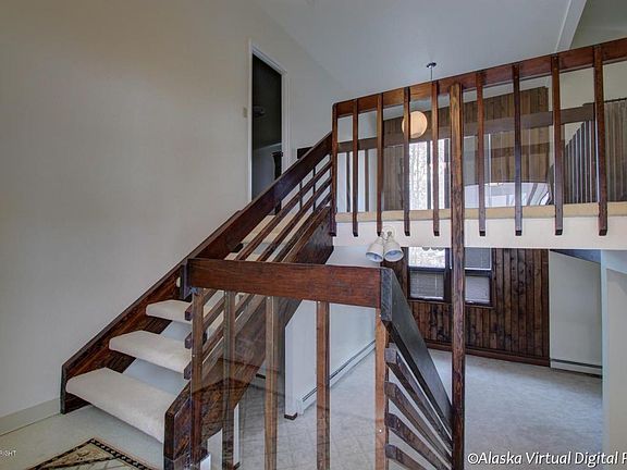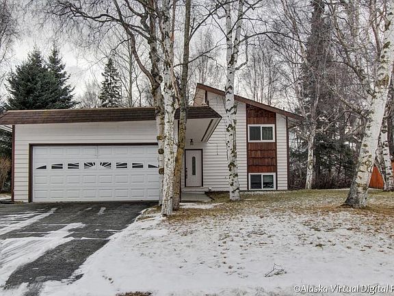 This 3 BD 2 BA home sits in a quiet neighborhood across from Jewel Lake, just down the street from Kincaid Park and just 5 minutes from shopping centers on Dimond Blvd, With trees at every corner it offers a unique floorplan. The MB/MB is upstairs with a walkway/balcony to the open upstairs family room. Two BRs down with the living room and kitchen. New windows are featured throughout the house