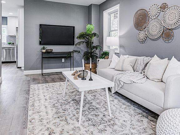 No stone was left unturned in this magnificent completed rehabbed home where everything is brand new! Tastefully designed with stylish statement fixtures, finishes, and modern amenities featuring luxury plank flooring and recessed lighting throughout all 3 finished levels. Sunlight streams in throughout the day into the warm and inviting living room, modern gourmet kitchen with quartz countertops, gleaming backsplash, and gas cook stove with overhead pot filler into the spacious dining room with bay windows. Upstairs the Primary suite features a large closet, ceiling fan and ensuite modern bath with custom tile shower. There are 2 more large bedrooms with ample closet space, and a full bathroom with a tub and shower combo. The completely finished lower level has a cozy family room, a 4th bedroom with a closet, and a 3rd full bathroom with shower. Enjoy spending time outdoors relaxing and entertaining on the covered deck off the kitchen, on the side patio, and in the spacious backyard with storage shed. Located near dining, shopping and commuter routes and transportation. Don’t wait, schedule your tour today!