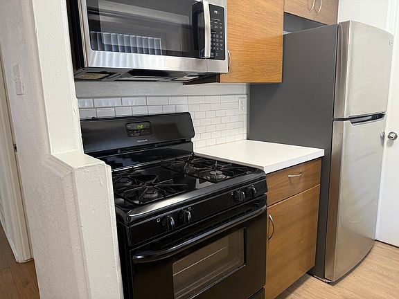 Discover comfort and style in this beautifully updated 1-bedroom, 1-bath apartment featuring sleek vinyl flooring, a contemporary tile backsplash, and modern finishes throughout. Enjoy cooking in your kitchen equipped with a gas stove and microwave, or relax comfortably beneath ceiling fans. A charming screen door brings fresh air and natural light into your space. On-site laundry adds convenience to your everyday living.