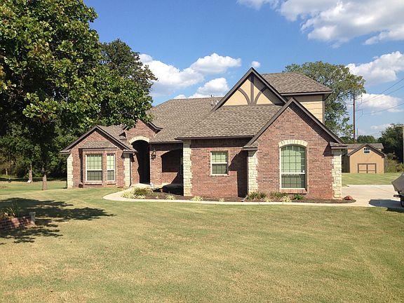 Quiet, cozy, elegance is yours nestled less than 5 miles to interstate access, TAFB, eateries and shopping. Located conveniently between I 40 and I 240, this home makes every square ft count! Loaded with quality from granite throughout, high-end fixtures, 11 ft ceilings with beautiful crown molding, and an large upstairs bonus room with 1/2 bath. Separate thermostat controls in living area and bedrooms, ensures personal preferences to temperature. Large closets throughout and plenty of storage. Have peace of mind during storm seasons with in-ground storm shelter conveniently located in the garage for safe and easy access. Relax in front of an electric start gas fireplace or enjoy cozy evenings stargazing near the firepit on the back patio. Large lot (.90 acre) with huge, 2 story shop/storage building. Savings on utilities with your own water well and aerobic septic system. This home is sure to please all of the family!!