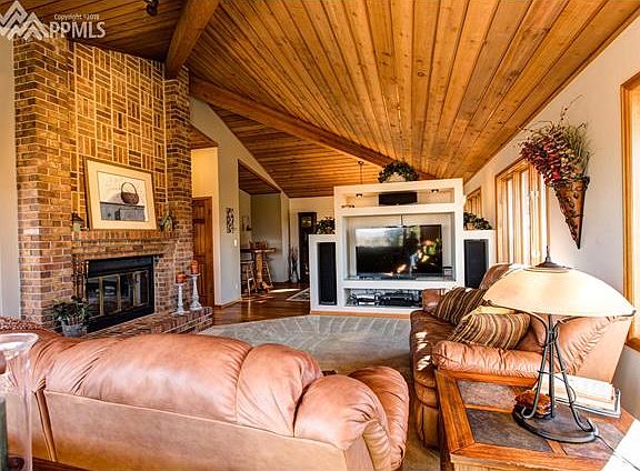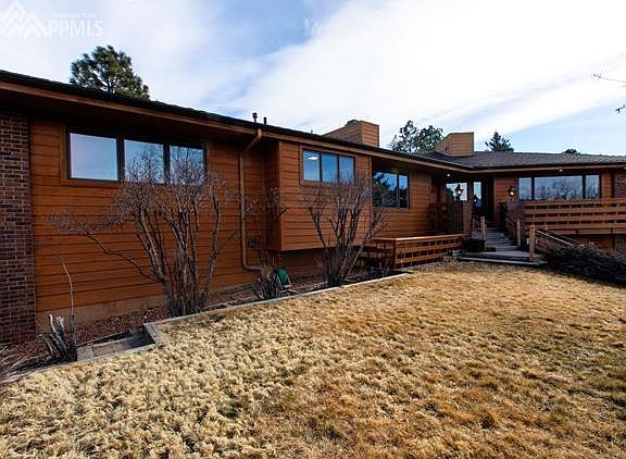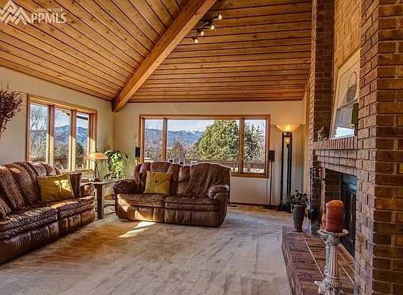 Incredible custom home rests on over 1/2 acre with killer views of Pikes Peak. When you enter you will see Vaulted Cedar beamed wood ceilings, skylights that open, Beautiful Ceramic tile. You will be wowed for sure, walking into the huge kitchen with double oven, ample cabinets, pantry, center island and Corian countertops and eat in center island. Kitchen walks out to covered wood deck where many BBQ's and quiet time can be enjoyed. The master suite adjoins a 5 piece master bath and has walk-in closet. This home has 2 furnaces, 2 A/C units, partial wrap around deck. Storage shed, work shop area, smart sprinkler system for the entire yard, 2 wood fireplaces and oh, did i mention amazing views of Pikes Peak and the front range.