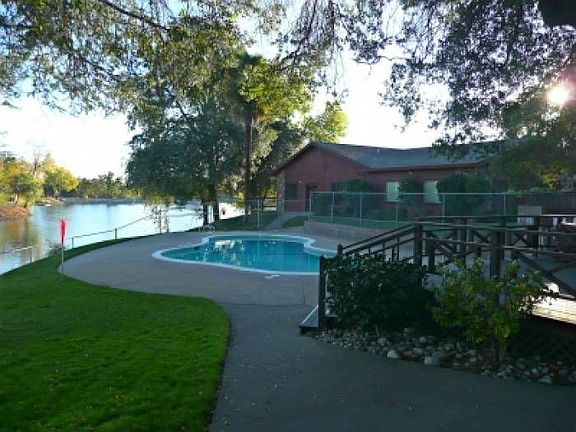 Beautiful private home in a lushly treed park. Walk to the lake and watch the geese fly in! Very well kept park. This seller will carry back, if needed! Home feels comfortable with designer like paint colors, fully textured walls and ceilings, updated kitchen, very large bedrooms w/their own bathrooms. Home comes with washer, dryer & refrigerator. No neighbors looking into your home, it feels very private! Large covered deck to sit out on and pretty sunset views from the deck!