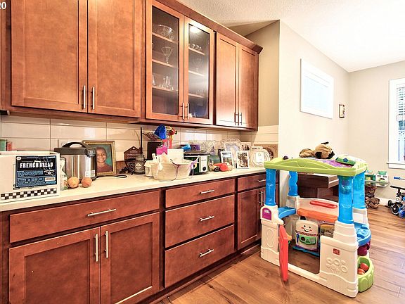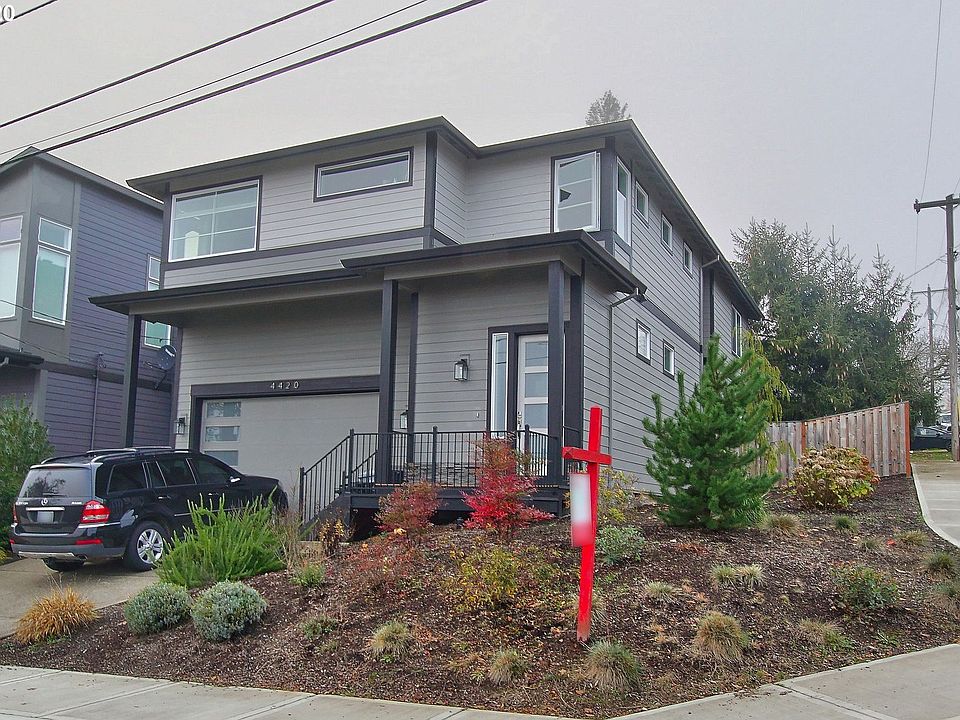 Contemporary with Mt Hood views. Excellent price per square foot. High ceilings. Great room floorplan. Kitchen: quartz counters, island, pantry. Upstairs: 3 generous bedrooms plus sunny bonus room with outstanding views or 4th bdrm. Covered patio perfect for entertaining.
