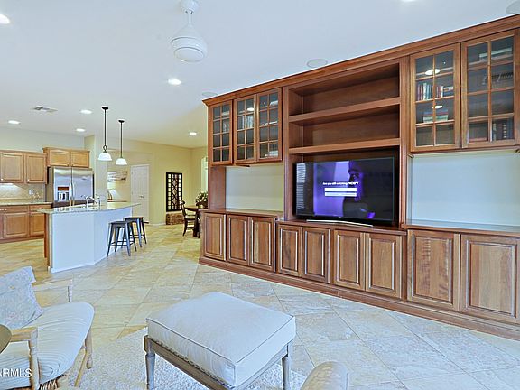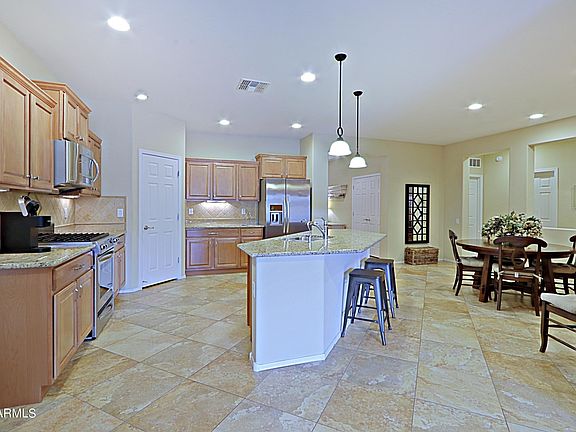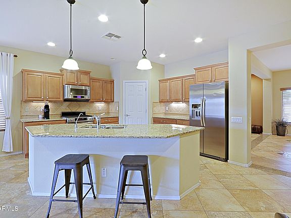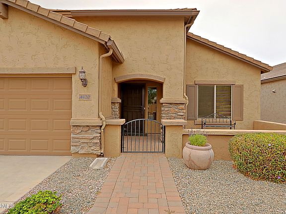 You will love the upgrades in this Mesa 3 Bedroom + Den, 2 Bath, former Pulte Model Home located in popular Bella Via. The property is in a lovely position just across the road from a green park. Beautiful landscaping in both the front and back including a gated front courtyard with pavers and rear synthetic grass putting green. Medallions, 22'' tile, upgraded cabinets, granite counter tops, designer details in both bathrooms, built in bookcase/entertainment center, pendant lighting, actual hardwood flooring in a couple of the bedrooms are some of the upgrades. The Den has a closet and could easily be converted to a 4 bedroom with double doors. This is a gorgeous home. Make it your own today!