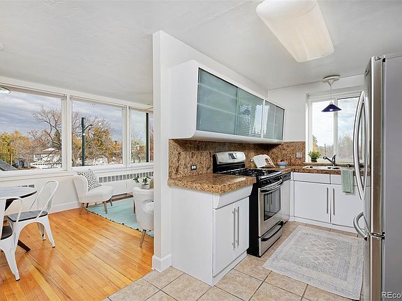 Fantastic top floor condo in the heart of Highlands with a private garage. This rarely available condo has fresh paint, newer stainless steel appliances, solid wood floors, newer windows and window coverings, and more. Two well-sized bedrooms. This small building features just 2 units per floor, a communal yard with outdoor patio, and a private garage space. Live in the middle of it all with Highlands Square and Tennyson St Shops and restaurants only blocks away. Easy commute to downtown and easy access to I25 and I70. This is the perfect lock and leave condo in the perfect location. Welcome home.