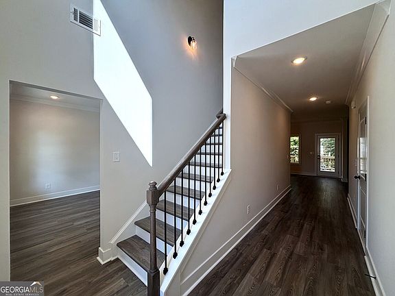 New Construction in Gainesville, Georgia! Welcome to the Lanier plan - a luxurious craftsman design that efficiently manages space across two stories. A covered porch opens to a striking foyer leading to the primary spaces - family room, kitchen, and powder room. The open-concept kitchen, complete with a large pantry, connects to a formal dining area. Upstairs, all bedrooms are located for family convenience alongside a laundry room. The master suite boasts a generous walk-in closet and a plush bath with a walk-in shower and tub. Three additional bedrooms and a full bath round off the upstairs living area. For detailed information and specifications, please contact our sales specialist. The owners are licensed Real Estate Agents/Brokers in Georgia.