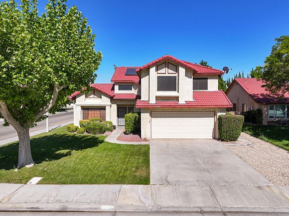 Turn-Key, corner lot, energy efficient home in West Lancaster. Built in 1988 and offering over 1900 sqft of living space, this beautiful 2-story has plenty of space for a large family. As you enter the home you'll walk into the cozy formal living space with ambient gas fireplace. This living room opens to the formal dining space with new lovely Vinyl plank flooring. Downstairs there is also a large kitchen, with stainless steel appliances, tile flooring and counters, ample cabinets and drawers all tastefully painted and equipped with nickel knobs/handles, a breakfast bar top and window that looks out to the backyard. Off the kitchen is a family room for added comfort as well as a half bath. Upstairs there is 3 sizable bedrooms, a full main bath with double sinks, shower/tub combo and then there's a primary suite with plantation shutters, a walk-in closet and large master bath with dual vanities and an updated walk-in shower. All rooms upstairs have also been updated with new Vinyl plank flooring. Other features include a 2-car garage with full laundry hookups, washer and dryer included, a large rear yard with block walls, patio cover and slab, a large storage shed, beautiful landscape, front and rear auto sprinkler system and solar lease to save on energy expenses.