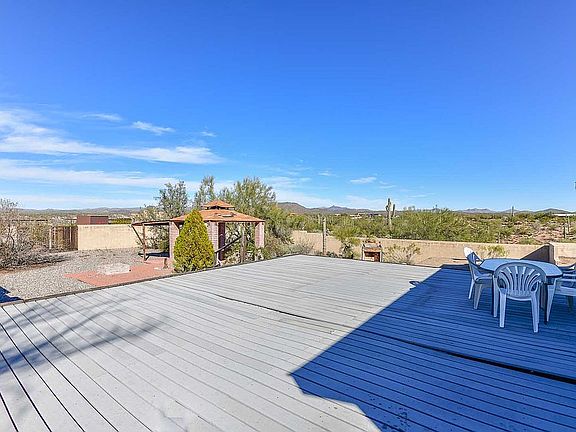 Bring your toys and call this one home! This lovely property is sitting on 1.314 acres of land surrounded by incredible mountain views! Spacious great room with a breakfast nook and convenient counter bar seating. Two bedrooms, two full baths and a large laundry room. New paint and vinyl flooring throughout! There are views from every window in this property! Shared driveway and well with 44125 N Highway 60 (which is also for sale). Large deck needs some work but what a great space to enjoy the sunset and sunrise! Only a few minutes from Wickenburg, the roping capital of the country - or Surprise for dining and shopping. This is the perfect location to be away from it all, but still conveniently access amenities!