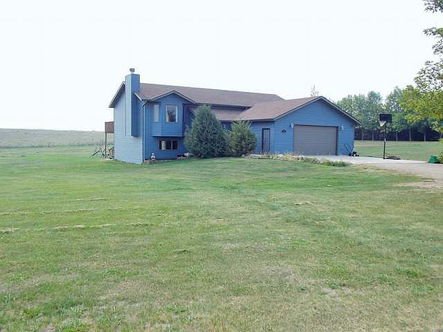 PEACEFUL COUNTRY SETTING in rural NE Bismarck on 4.63 ACRES with minimal neighbors and maximum serenity. 5 bedrooms, 3 bathrooms including the master suite with private bathroom and walk-in closet (3 bdrms on the main level). This beautiful home offers tall cathedral ceilings in the open kitchen, dining and living room with FIREPLACE and MAIN FLOOR LAUNDRY ROOM. Relax on the deck while viewing the open prairie or stargazing at night with no backyard neighbors. The lower level has a huge WALKOUT FAMILY ROOM, 2 bedrooms, 3/4 bathroom and bonus hobby room. This home also features GEO THERMAL HEAT, large oversized garage with floor drain and hot and cold water. PLENTY OF ROOM TO BUILD A SHOP!