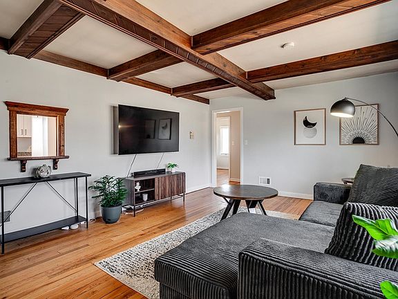 Welcome to this move-in ready and charming, 4BD, 1BA home featuring a spacious, functional layout. Just past the entryway, you're greeted by a light-filled living room adorned by wood ceiling beams and gorgeous hardwood floors throughout the majority of the main level. You'll find two airy bedrooms, a full bath, and on the other end of the living room, there's an informal dining open to the cozy kitchen with stainless steel appliances. There's also a pantry tucked away in the kitchen, adding another modern convenience. Moving to the lower level, find two nicely-sized bedrooms, flex space flowing into the family room, and a laundry area with plentiful storage in the utility room. Outside, there's a fantastic deck with easy access from the kitchen, large fully fenced-in backyard, a 1-car garage with an attached storage shed, and beautiful curb appeal. With downtown Robbinsdale, Crystal Lake and Sanborn Park nearby, and easy access to highways, this home is the full package. Welcome home!