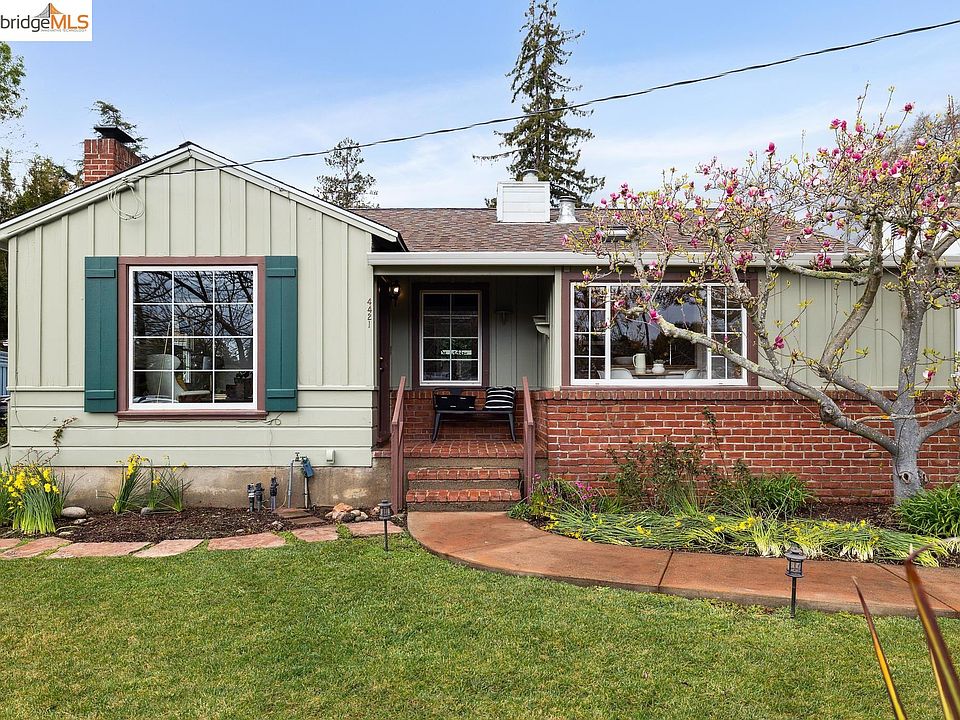 All-level sunny paradise with spacious detached "tiki lounge"! Be charmed by the gleaming wood floors and vaulted ceiling in the bright living room. The kitchen and large breakfast nook are neat as a pin, overlooking a big front yard and offering granite counters and newer stainless appliances. A half-bath and laundry are near at hand. The three bedrooms form the rear of the house, ample in size and looking out at the backyard. The middle bedroom works as a comfortable office, with sliding door out to the patio and pool deck. This may be the most-loved backyard on Anderson Avenue! Behind the detached garage is a tiki-style lounge with bar and banquette seating. With a half-bathroom and dressing room, you are well-equipped for splashy summer parties. Behind the rear gate lies a gazebo and wide fenced garden, ideal for veggie beds or for just a bit of quiet.