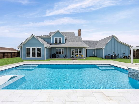 Welcome to this stunning Augusta Custom Home in the prestigious gated community of Azalea Hollow. Thoughtfully designed for both elegance and everyday comfort, step inside to a rustic entryway that leads into a spacious open concept layout featuring vaulted ceilings with seamless flow into the dining area and a gourmet chef's kitchen featuring custom cabinetry, an oversized island, built-in stainless steel appliances, and a Butler’s Pantry. A private study with custom built-ins provides the perfect home office or library. The main level primary suite is a true retreat with a generous sitting area, spa-like bath with walk-in shower and soaking tub, and a large custom closet with built-in storage. Upstairs, a second living area complements three additional bedrooms—one with a private ensuite and two connected by a shared bath with separate vanities. Additional features include a second living area or media room, a dedicated laundry room with built-ins and sink, and an oversized three-car garage with epoxied floors and a built-in workshop. The resort-style backyard is designed for both relaxation and entertainment, complete with a sparkling pool and spa, surrounded by open space and privacy. Situated just 30 minutes from downtown Dallas, this home blends exclusivity, craftsmanship, and convenience—delivering a lifestyle of comfort and distinction.