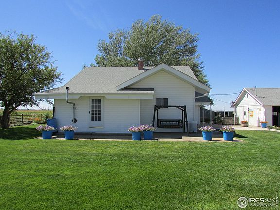 Perfect Beautifully Maintained and Updated 1924 Ranch on 1 Acre in peaceful private location includes 3 Bdrms. 1 bath, bright open floor plan, fully remodeled kitchen w/ Silestone counters 42" Hickory cabinets, tile floors and stainless steel appliances, large family room w/ pellet stove, partially finished basement w/ Rec. room, newer windows and more. Detached 3-car garage. Huge 34 x 48 shop. Multiple storage buildings. fully fenced horse area. Bring your animals and your toys. Backs to farmland and wonderful 360 degree views. Colorado Living!