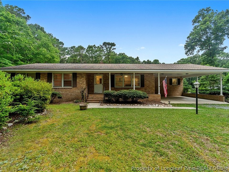 Home Sweet Home! All Brick ranch on a small hill overlooking OVER 2 ACRES of land! Privacy galore, but yet convenient and close to Apex, Holly Springs, Cary, Raleigh, and Sanford. Only a short distance off of US 1. 3 Bedrooms and 2 Baths. Kitchen conveniently connected to the laundry room while open to the dining room with sliding door to walk out directly onto the screened in porch. Enjoy nature while sitting on your own covered swing on the wooded lot! Covered shelter/storage area, detached covered area/carport, PLUS a WIRED workshop! Updated septic, newly updated crawl space with dehumidifer, sealed vents and 6 mil plastic, along with new duct insulation.