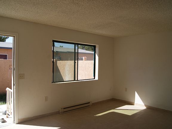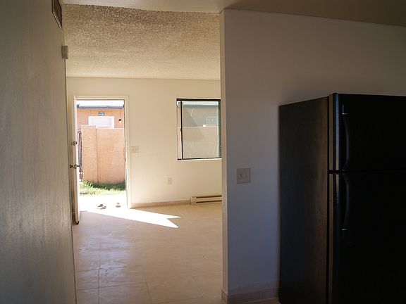 2 BR / 1 BA Townhouse Remodeled / New bathroom / New tile floor * Entry: Steel entry doors with steel frames and high security locksets. * Kitchen: Newer refrigerator, Full size electric range. * Bathroom: Adjustable spray/pulse shower head on hose. Medicine cabinet. * Living area: Private patio and steel entrance gate provide private space for outdoor living * Bedrooms: Cool white color with premier eggshell paints. The bedrooms are measured 10 x 11 * Patio: Secured gate to private enclosed patio. Beautiful mountain view * All Electric Heating, Central cooler in each duplex with the option of Windows AC * Free Wi-Fi * Pre-wired for telephone and cable TV