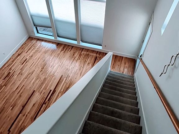 New hardwood floorsGas heatingModern kitchenCathedral ceilingNest thermostatsOpen layoutExtra parking space