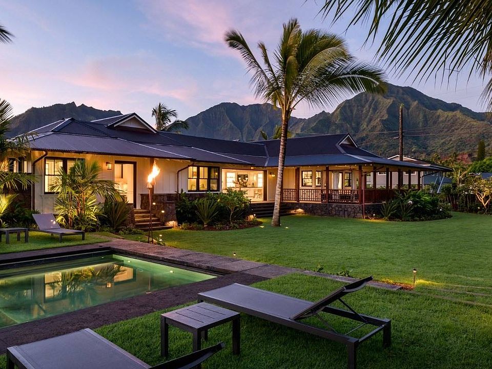 This brand-new, premium residence in the heart of Hanalei Bay, designed by renowned architect Kevin A. Clark, was completed in late 2022 and is a 2-minute stroll from both the pristine ocean and the vibrant shops and dining of Hanalei Town. This classic Hawaiian home is a testament to exquisite craftsmanship and the use of premium materials. Nestled on an expansive double corner lot spanning half an acre, this architecturally significant property boasts approximately 5,800 sqft of indoor and outdoor living space. With four spacious bedrooms and 4.5 bathrooms, it offers a private sanctuary surrounded by impeccably manicured gardens.