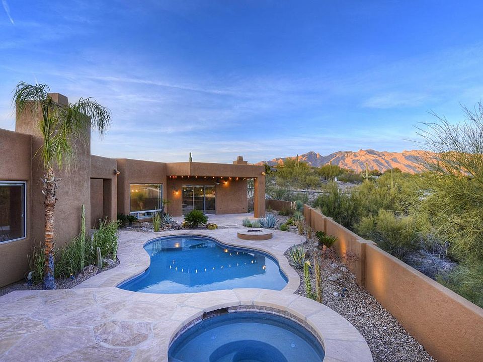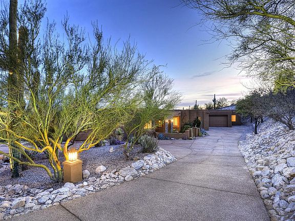 Gorgeous Home in Gated Catalina Foothills Estates 10 w/Mountain & sweeping city views. Single story, no steps! Enter from a circular driveway- plenty of parking & 4-car garage to boot. Home has 4 bedroom-5 bath w/an attached 891 square feet of workshop, art studio-man-cave-rec room-home theater or could easily be a lovely guest quarters w/half bath, separate office & zoned HVAC- you decide! Home has updated kitchen w/a fantastic center island, numerous dark wood walnut stained cabinets, Granite & Quartz counter tops, Dacor 5 burner gas stove, stainless Jenn-air double ovens,butlers pantry with more storage space & Samsung stainless Refrigerator/Freezer featuring water/ice in the door. Kitchen has such an open floor plan, it over looks the living room via a spacious breakfast bar for seamle