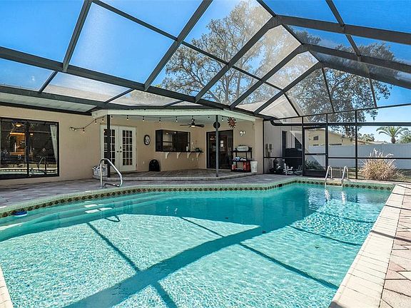 Back on market, no fault of seller. Its your opportunity now! Welcome to this beautiful maintained 3 bedroom 2 bath home. Inside you will find a split bedroom floor plan. Master bedroom and family room with sliding doors going outside to your pool. Dining/ living room area with French doors. Serenity and peace is what you will feel while relaxing in your pool and looking at the trees in your big fenced backyard. This home is definitely move in ready. No HOA or CDD fees.