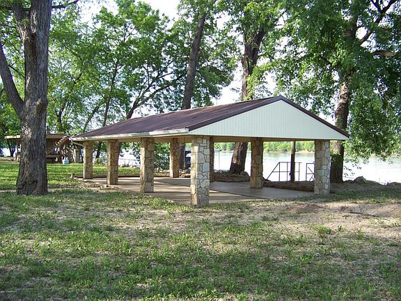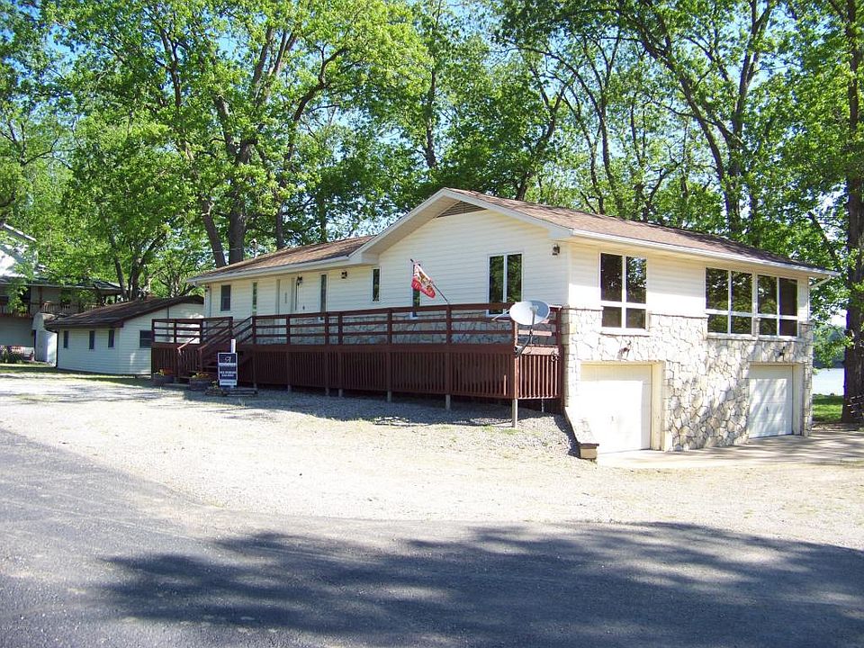 Nice riverfront ranch with all the amenities you need for waterfront living: Pavilion, dock, boat ramp, detached garage plus 2 car under PLUS John Deer garage. Living areas are large with beautiful views of the oversized shaded lot and river. Weekend retreat or just enjoy year round living! Property is in the floodplain, basement is unfinished and set up for flow thru of flood waters. Detached garage is 24 x 32.