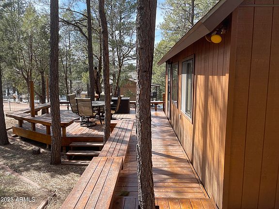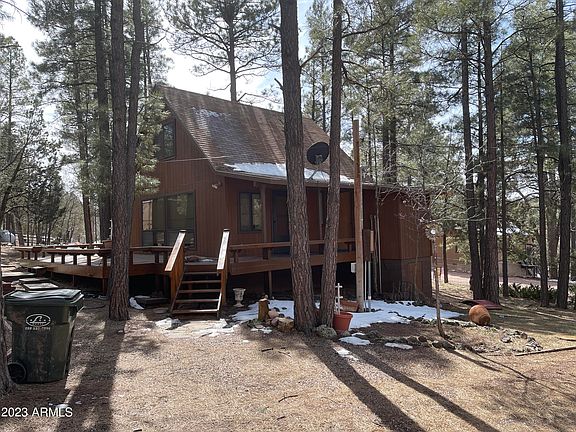 Well maintained cabin in Summer Pines #2 backing the USFS land. 2BR/1BA cabin can be used for summer or year round use. Nicely treed lot, fully fenced. Living area with wood stove is on the first floor with eat-in kitchen, full bath and laundry. Loft area has master bedroom and guest bedroom. Redwood decks surround the house on 3 sides. Don't miss this one. Homes backs National Forest. Priced below appraisal.