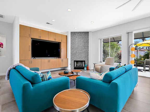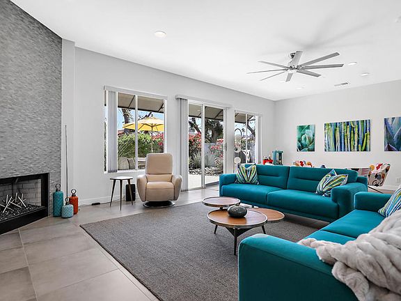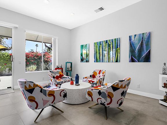 Palm Springs style in Colony Cove, 'the best-kept secret in Indian Wells!' This beautiful pool home has been completely remodeled throughout and is being offered turnkey furnished. Upgrades include quartz kitchen and bath countertops, porcelain tile flooring, glass tile kitchen backsplashes, rift-cut oak cabinetry, custom window coverings, and stainless-steel Kitchen Aid appliances. The pool and spa are easily accessible from the primary bedroom and there are plenty of outdoor spaces for entertaining. Colony Cove is a centrally located, gated community with HOA fees currently only $100/month! The City of Indian Wells also offers some of the best resident benefits in the Coachella Valley. For more info, go to https://www.cityofindianwells.org/our-city/residents/resident-benefits.