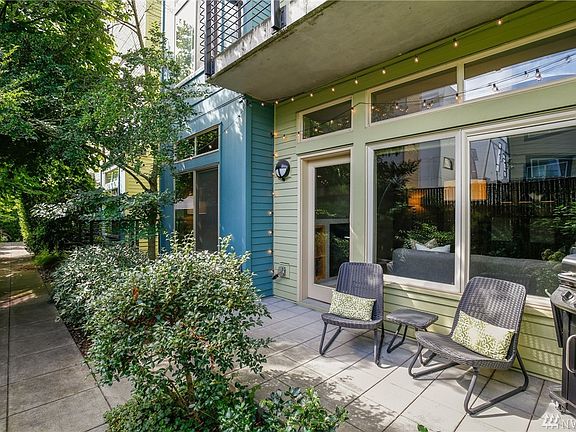 Spacious open concept condo in highly desired Wallingford! Amazing location & easy access to I5, UW, downtown, shops, restaurants, Burke Gilman, & the Univ bridge! Beautiful kitchen has SS appliances, gas cooking, & soft close cabinets. Open nook has custom closets & is perfect for an office! Oversized windows keep it light & bright, & doors open to your private terrace w/peaceful common green area! Other features include a 24 hr exercise room, bike rack, storage, & sec. parking space!