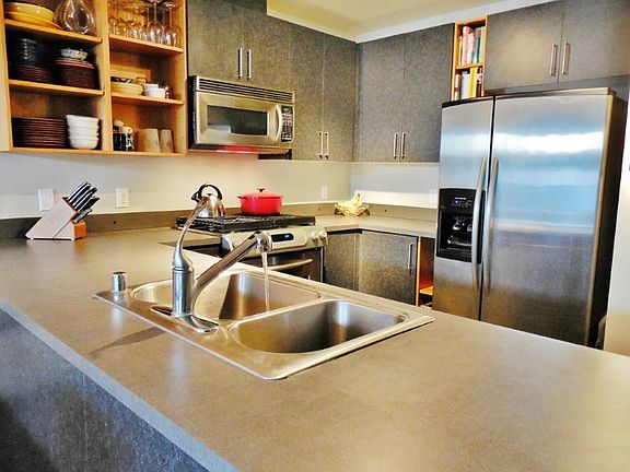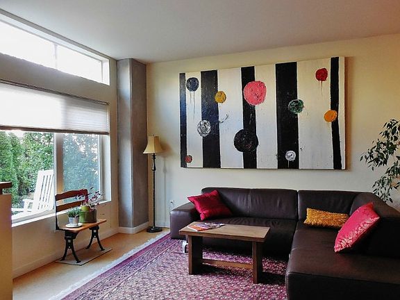 Chic urban loft in award winning Bagley Lofts. Soaring ceilings, light, open floor plan with its own entrance and patio on the east side of building, affording a surprisingly quiet and private location tucked into one of the most desirable neighborhoods in town. Walk Score is 98! Cafes, theaters, express buses, UW, Green Lake etc. Chef's kitchen opens to living/dining area great for entertaining, cork and concrete floors. Pet friendly, bike storage, secure garage, fitness center, well run HOA.