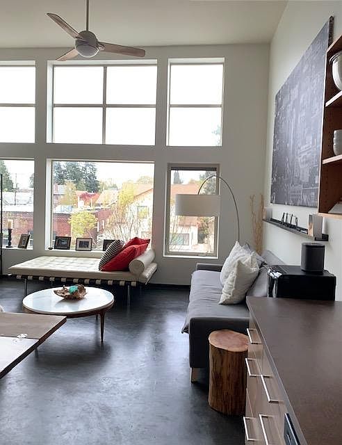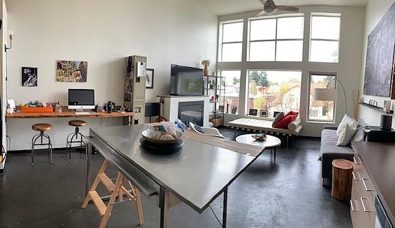 This wonderful urban chic loft has two sleeping areas, open floor plan, soaring ceiling and brilliant light from a wall of windows. Trendy concrete floors, in-unit w/d, electric fireplace, dishwasher, Wolf gas range, built-in microwave, refrigerator, additional storage and large secure garage. This top-floor condo is unique and beautiful. Walk out the door to nearby shopping, restaurants and all that lively Wallingford has to offer. Burke-Gilman trail nearby. Walk to nearby Green Lake and U.W. Owner pays for water, sewer, garbage and gas