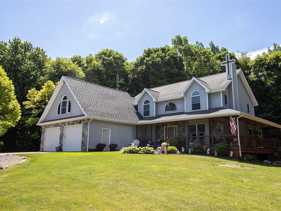 This amazing property pushes all the right buttons! The living space offers nearly 2800 square feet with 3 bedrooms and 3 baths, plus a 28x16 office over the garage that could be a fourth bedroom if needed. Additional 900 square feet in finished walkout with 4th bath. The 3 season room is all cedar with plenty of windows, offering gorgeous views of nature. The pole barn is 60x36 and is half work shop and half storage. Workshop is insulated, heated, has water, 200 Amp service and is plumbed for a bath. The second floor of the barn is 60x20. The real jewel is the 27 acres of property with woods, two ponds, food plot, custom built deer blind, beautiful landscaping and fabulous peace and tranquility! Your own piece of Paradise! Owner is a custom builder.