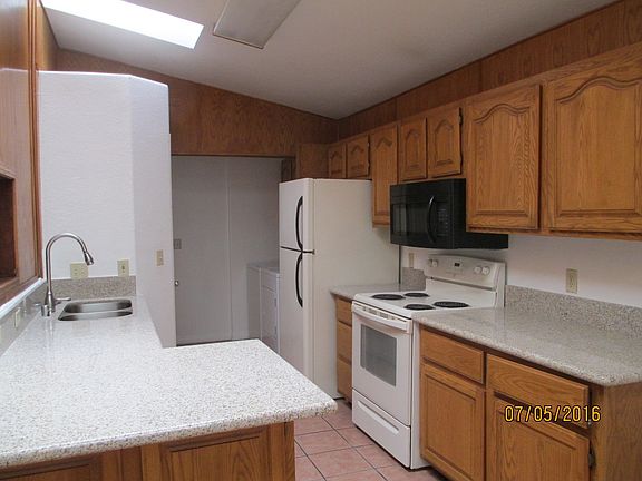 Lovely 3 bedroom with sunken living room and fireplace, Kitchen has granite counter tops and tile floors. Sky lights in bedroom and master bath, ceiling fans thru out, large master with mirrored closet doors, slider door to covered patio. Security gate entry, all appliances included, freshly painted
