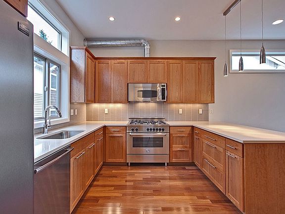 Welcome to this the high-end, modern, light-filled home in Wallingford, one of the most walkable neighborhoods in Seattle! Uniquely functional main floor with gourmet kitchen, high ceilings, dining space & a large SW-facing deck. Upstairs find vaulted ceilings & a bath for each of 2 bedrooms. Handicapped-accessible lower-level studio has high ceilings, 2nd kitchen & 3/4 bath. Use as live/workspace (retail, studio, services), home office/gym, guest suite, or rent as a separate unit! Hardwood floors except on stairs. W/D in unit. 1-car attached garage. Walk score 95, just steps to QFC, coffee shops, restaurants, farmer's market, and Green Lake. Walk to Light Rail Station opening Sept '21. Bike score 84. Easy commute to DT, UW & eastside. 1st, last & 1 mnth dep. 12+ mnth lease. No smoking. Pets negotiable on case by case basis. 700+ credit. No co-signers. Renters insur req. 3:1 income ratio. Tenants pay all utilities.