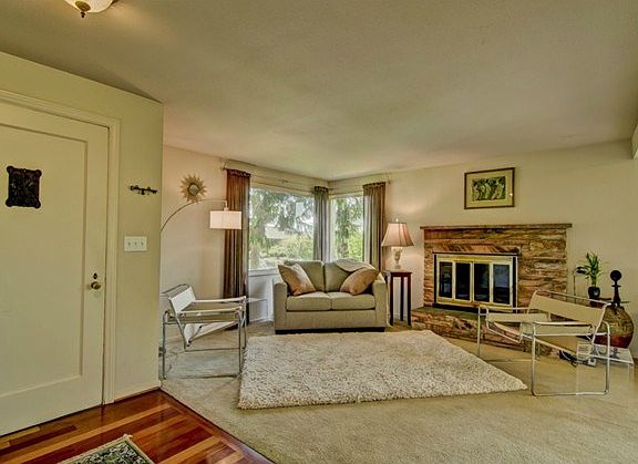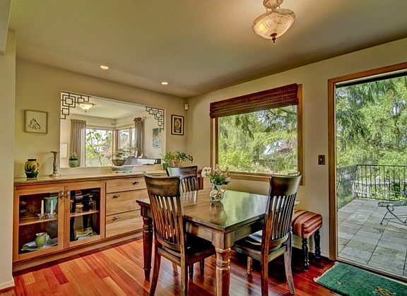 Nestled into a peaceful setting with tall firs,filtered sunlight, beautiful gardens, distant views of the Olympics & Puget Sound, this 1943 home has been lovingly nudged into the 21st century. Rich Brazilian Cherry floors, beautifully designed kitchen with cherry & granite, adjacent dining room with craftsman style buffet, two updated stone & tile baths, romantic master bedroom with fireplace, views of lush greenery, Sound & mountains, 2 additional bedrooms, family room, storage & much more.