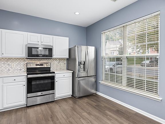 Come see this wonderful two-story townhome with a finished basement in the Hilburn Townhomes subdivision! You’ll love the beautifully designed kitchen with quartz countertops, a smart convection microwave, Carerra marble backsplash, and stainless steel appliances. Enjoy the spacious and open living room with true hardwoods (2020). A Large deck that backs up to trees for privacy. Three bedrooms upstairs, including the owners’ suite with WIC and double vanity sinks. A fantastic walk-out basement downstairs with a bedroom/bonus, half bath, storage, and a large bonus room- makes a perfect theater room, office, or flex space. Additional updates include new carpets (2022) and HVAC (2018). Ideal location! Surrounded by restaurants, retail, and parks! Minutes from I-540, I-440, RDU Airport, and Lake Lynn. Don’t miss this opportunity!