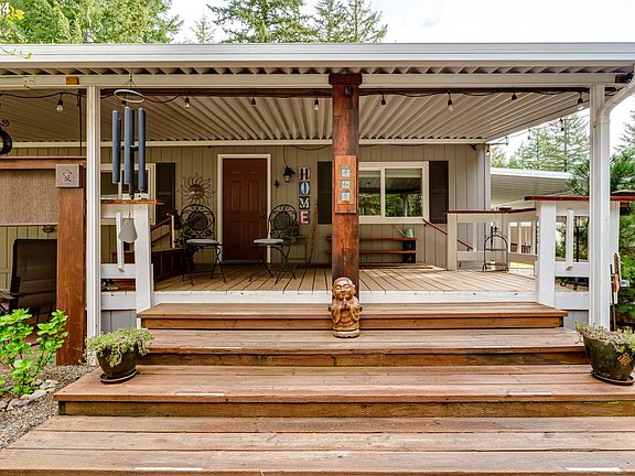 Affordable living on the McKenzie. This gorgeous, updated home features 2 bedrooms & 2 baths. The primary bedroom boasts dual closets offering plenty of space for 2. Both remodeled bathrooms include large soaker tubs. Additionally, the home offers an expansive vaulted great room w a generous sized kitchen featuring a newer stainless steel refrigerator & range. Washer and dryer also convey. Improvements are numerous & include roof, deck improvements, paint inside & out, newer plumbing, engineered flooring, newer hot water heater, view window installed in primary bedroom. Outside a large-covered deck & carport for two. A newer finished 140 sq ft, insulated outbuilding offers additional living space, and 10X12 tool shed has abundant shelving and storage features. Both outbuildings are wired with outlets. The yard is a Shangri-La w custom features everywhere. Water features, a lovely pergola with 2 grape varieties, meditation patio, trails through the upper natural area. Enjoy plum, fig & apple trees & several gardening areas.This manufactured home enjoys the best of both worlds. Located on a spacious, beautifully landscaped lot, among 4 other similar size lots on a hill, all surrounded by nature, and part of the sought-after Vida Lea Community Cooperative. This 55+ community is resident owned, meaning there is no landlord. The homeowners operate the community themselves, so they make the rules. A democratically elected board of directors determine who sits on the board, determine the annual budget and approve changes. As a bonus the co-op has a large barn equipped with tools, including ride-on mowers, and a tractor. RV parking for $50 per month when available. This is not your typical manufactured home park. This is truly your chance to own your own affordable slice of heaven. Preference is given to low-income buyers, defined as under the 80% AMI for Lane County ($47,000 for 1 person & $54,000 for 2.)This is NOT a HOA.