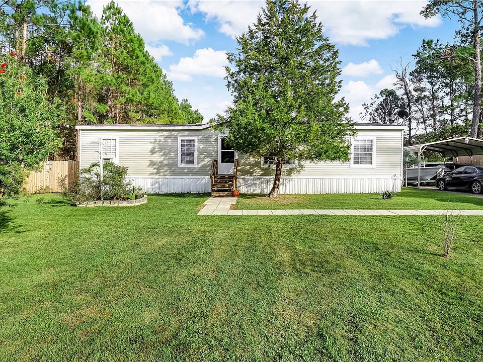 OVER 1 ACRE IN CALLAHAN WITH NO HOA AND OPEN RURAL ZONING! Private, fenced with gate, and move in ready. Enjoy the land and country living in this 3 bedroom, 2 bath 2008 manufactured home that sits on 1.24 acres with cross fencing and assorted citrus trees, blueberry & blackberry bushes, grapevines and more. The spacious property allows plenty of room for toys with a metal covered carport that is perfect for the car, boat or RV. Enjoy family time in the open living room with electric fireplace or entertain with plenty of room outside on the large deck. FULL HOME GENERATOR WITH OWNED PROPANE TANK, 2 NEW WELL PUMPS! The 8 X 20 metal storage container with electric conveys. Nassau County taxes, and Callahan Public School District. Quick access to I-95 / Jacksonville and an easy commute to Yulee & Historic Fernandina Beach.