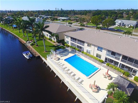 YES YOU CAN!-still have gulf access in a prime location for under $150K! Come see this squeaky clean ground floor corner unit in a quiet complex with low maintenance fees, today! This complex has a brand new seawall. The community waterfront pool area invites you to relax in the Florida sun or gather with other neighborly residents. This unit has a brand new water heater and new paint throughout interior. From your lovely lanai, you can enjoy waterside dining or tranquil reading time while overlooking this wide canal view. This location also provides an excellent short boat commute through the Caloosahatchee River and out to surrounding islands, while being centrally located for downtown dining and shopping. There are so many day-trip destinations from this area and you can have peace of mind knowing that for longer trips, you've got complete exterior storm shutters. There's also a convenient extra storage area and covered parking-what more could you want? PS: Easy to show-Owners are good w/ short notice-