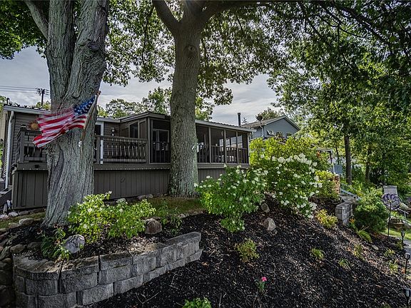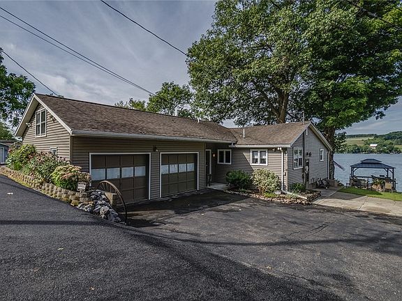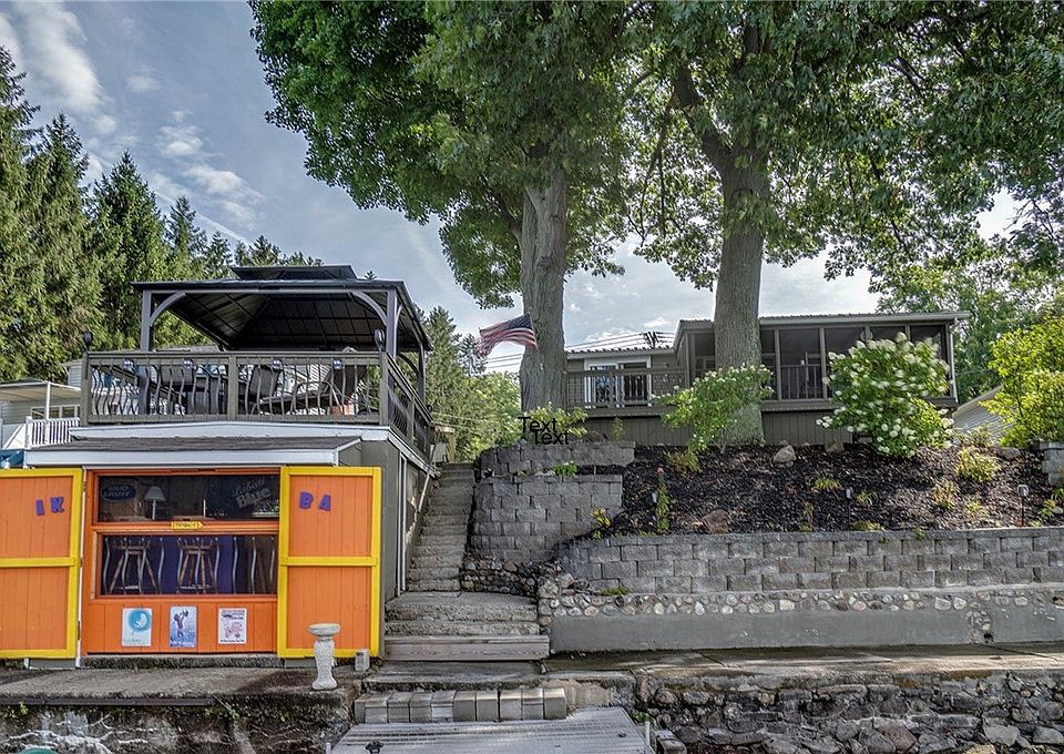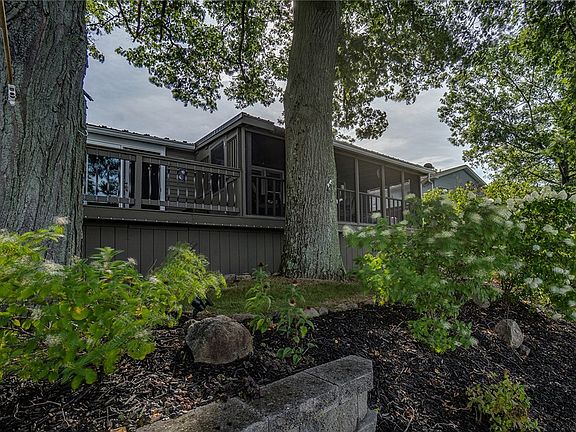 Waneta Lake! Perfect lake living situated on the water on the east side of Waneta Lake. This 2 bedroom, 2 full bathroom home has all first floor living with attached 2 car garage, large owner's suite with full bath, second bedroom and another full bath on main floor. Huge vaulted living room with dining area open to kitchen. Finished basement for second living room with additional fireplace, tons of storage throughout the home and bonus sleeping downstairs. Soaring ceilings, cool and unique woodwork and wonderful indoor/outdoor living and entertaining! Walk out to screened in porch, or open deck, boat house with covered sitting area above and screened in tiki bar on the water! Lush landscape, beautiful views, privacy and plenty of parking in a quiet neighborhood!