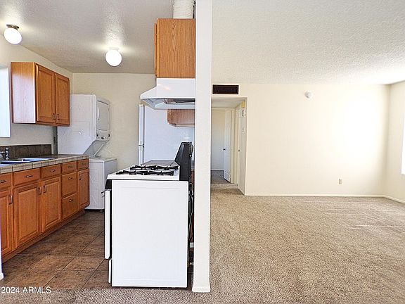 Comfortable & Clean, Ground Floor Condo in the Las Casitas Subdivision. This 2 bed, 1 bath unit has a nice kitchen with a stacked washer & dryer included. A sliding glass door thru the dining room leads you out to a small, fenced yard.
