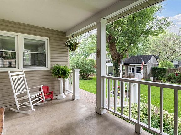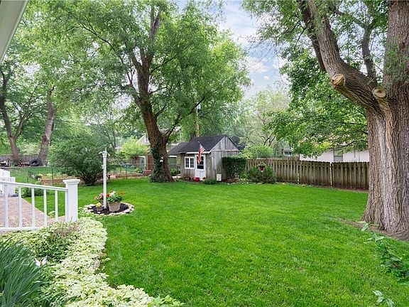 Highland Park Retreat with beautiful treed yard to enjoy from spacious covered patio. From entertaining to relaxing with your morning coffee, this outdoor living space is top notch! Sun-filled living room features fireplace. French doors in dining room overlook covered patio. Updated kitchen adds to chief’s delight with island, pantry and wood floors. Two bedrooms on main level plus full bath with shower tub combo. Upstairs features a large attic bedroom with full bath. Full basement in interior access for storage, hobby room or future living space. Bonus laundry on main level off kitchen. Storage shed in tranquil treed yard with fence. Convenient location to park, highway access and downtown Olathe.