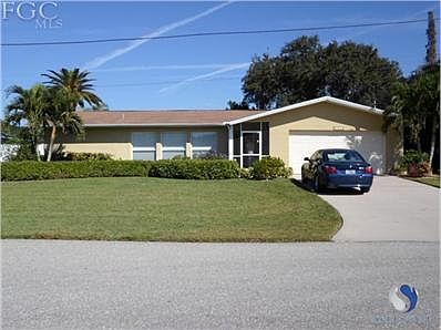 Stunning newly renovated, gulf access home. Contains 4 spacious bedrooms, 3 baths, with a 2 car garage. Kitchen boasts 42 cabinets, granite counter and a cook top. Tile set on the diagonal in the living area and carpet in the bedrooms. LUSH landscaping with banana and avocado tree in the back yard! Boat dock with lift. One can be in the Caloosahatchee River in 10 mins. Nice canal and water view with surrounding properties showing pride of ownership. Too many features to list! The current owners have truly made this home a gem.