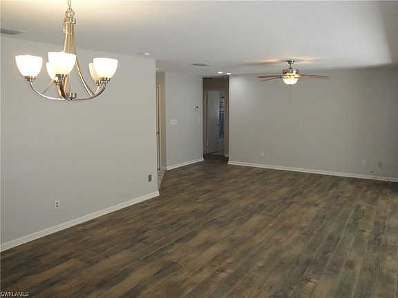 LOCATION Right in in the middle of the downtown Cape Coral area. Just 4 and a half blocks north of Cape Coral Parkway. Close enough to walk to the street events, fireworks, bars and restaurants. No pets please by request of owner. Pool home on a quiet street. Interior and exterior have just been freshly painted. New laminate wood plank flooring throughout most of the home. New carpet in the master bedroom and 2nd bedroom.. Large tiled family room with triple sliders to the pool. Clean and ready for occupancy immediately. Call today for immediate response to any questions or to view this home.