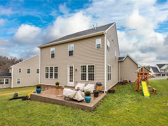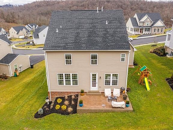 Move right in to this stunning 4 bedroom 4 1/2 bath home in the Heartland Homes community, Walnut Ridge in South Fayette Township. Less than 2 years old, meticulously maintained with so many features throughout. The first floor features a den off the entry way, a mud room coming off of the 3-car attached garage. The first floor continues into an open-concept living room, dining room and kitchen with breakfast nook with tons of natural light. Hardwood floors through the entry, dining room and kitchen with stainless steel appliances, kitchen island with seating, granite countertops, beautiful cabinets, and pantry. The second floor master suite has his and hers closets, trayed ceilings, ceiling fan and a tiled master bath with soaking tub. The spacious bedrooms have a jack and jill bathroom and an ensuite bath in the 4th bedroom. The finished basement provides even more living space and another full bath. The backyard patio and yard complete this wonderful home. Dual-zone HVAC system.