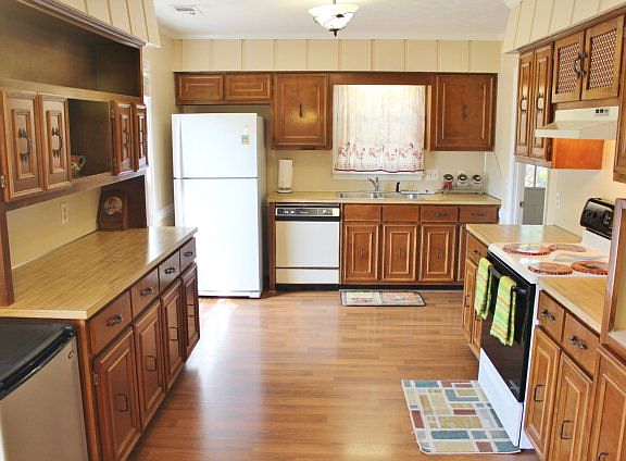 All brick home with split floor plan. Freshly painted interior. Laminate wood floors in main living areas. Carpet in bedrooms. Large eat-in kitchen with laundry room attached. Spacious master bedroom has cathedral ceiling and walk in closet. Master bath includes stand up shower and soaker tub. Two inch blinds throughout. Wood burning masonry fireplace with gas starter. Double carport with two storage rooms. Large, level & fenced backyard with small storage shed. Roof only 3 years old.