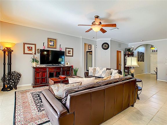 Spacious 3 Bed 2 Bath Home in Crossing Creek Village. Featuring Barrel Tile Roof, Tiled Floors in the Living Areas, High End Laminate Wood Floors in the Bedrooms, a Florida Room, Granite Kitchen Counters, Large Master Bedroom and Bathroom, Soaking Tub and Large Shower, Crown Molding, Breakfast Bar, Laundry Room Sink, Large Lanai for Entertaining, Brick Paver Driveway, White Vinyl Fence, Gated Front Porch and more. The property has been lovingly maintained by the Original Owner, you have to see it before it's gone. Don't forget to check out the 3 D Walkthrough Tour.