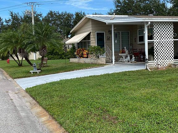 Private and Quiet!! This house has both and more! When you step into a completely finished sunroom you'll notice that the room is very quiet and holds an even temperature (even though it is not air conditioned). It is very well insulated and flows seamlessly into the large cathedral ceiling living-room. The dining area has wood grain laminate flooring with a beautiful built in wall cabinet... it adds that "touch of class" we all seek! Here's a gem of an idea, the wall unit would make a fabulous coffee/espresso bar or cocktail bar so you could easily take your drink out to your oversized screened lanai to enjoy the morning or the cool of the evening with your new friends and neighbors! Walking into the kitchen, you will see that there is more than amble counter and cabinet space... with multiple pullout shelving! The triple windows over the sink allow for wonderful natural light. The Stainless Steel Refrigerator (Newer), Stove (Newer), and Dishwasher (2019), garbage disposal (2019) are in great working order.... There is even an extra refrigerator/freezer on the lanai that is staying with the home/ Moving down the hall from the kitchen, you'll find a nice size Guest Bath with tub/shower and a Large Guest Bedroom with cathedral ceilings has a Queen Bed, Tall Chest of Drawers and Bureau which is with the home! The very large Master Bedroom, on the left, has a cathedral ceiling with an en-suite and step-in shower and a large walk-in closet. This master bedroom is able to accommodate a King Size Tommy Bahama Poster Bed, 2 Side Tables, Long tall Bureau with Mirror and an Armoire! Oh, and a TV and Stand! Awesome! TREMENDOUS ADVANTAGES to this home.... a large attached storage area with washer and dryer (2016). But, THE BEST.... is the extra large enclosed screened lanai where you can sit and enjoy the breeze. Remember I Mentioned The Peace and Quiet! Your new home has the perfect setting located at end of home directly by the fire hydrant (you never know)! And behind you is "Private and Quiet" also since it is common ground too!! Can you see yourself living here? Call me and schedule a tour of this home for you or your family! All listing information is deemed reliable but not guaranteed and should be independently verified through personal inspection by appropriate professionals. Integrity Mobile Home Sales cannot guarantee or warrant the accuracy of this information, measurements or condition of any property. Measurements are approximate. Lot rent is subject to change.